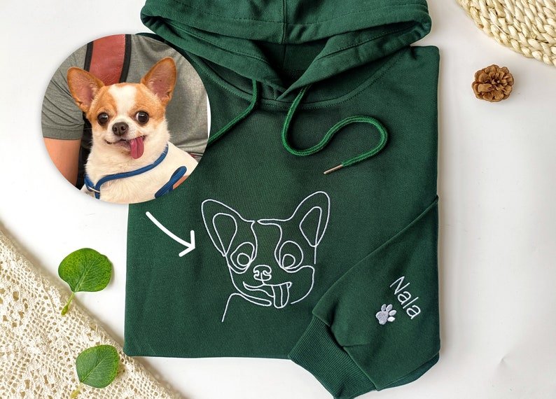 Custom Embroidered Dog Hoodie, Personalised Pet Portrait Outline Hood