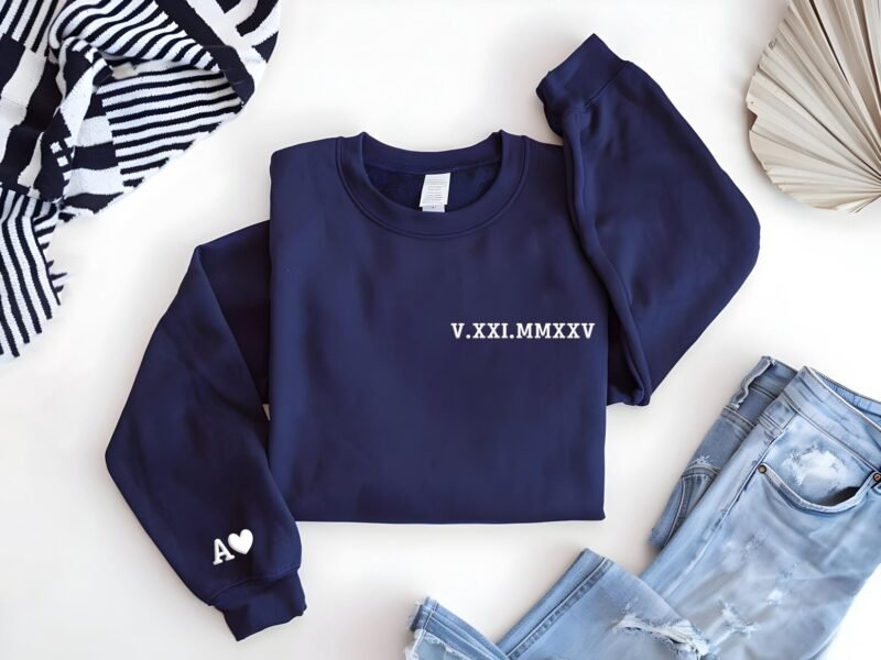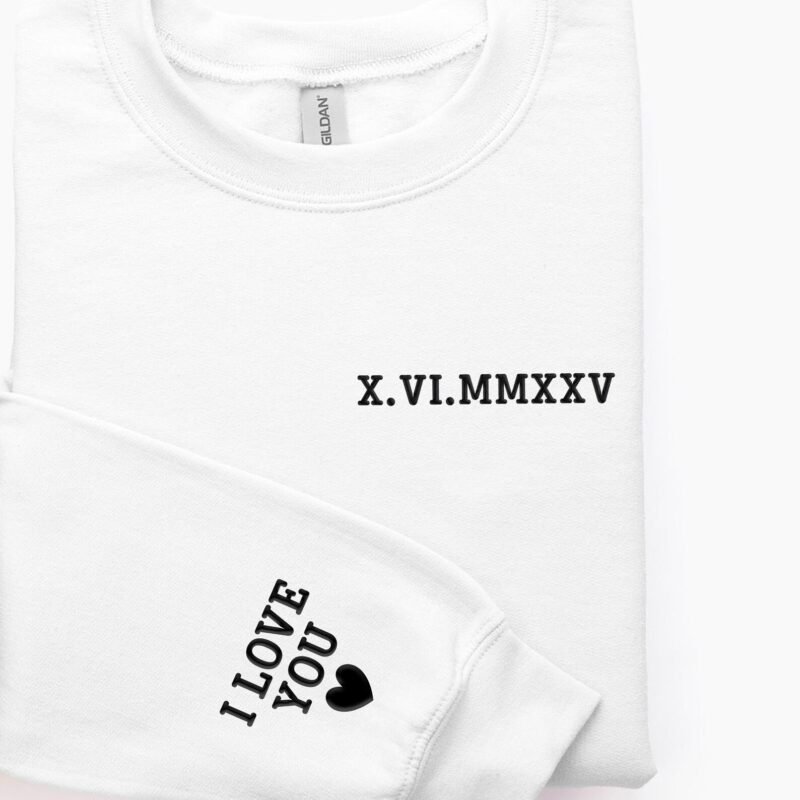 Celebrate a meaningful moment with this custom embroidered hoodie, featuring timeless Roman numerals to mark your special date. Whether it’s an anniversary, first date, or unforgettable milestone, this elegant piece blends modern design with heartfelt sentiment.